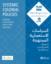 Webinar: Systemic Colonial Policies: Targeting Humanitarian Action in the Gaza Strip | ندوة افتراضية: السياسات الاستعمارية الممنهجة: استهداف العمل الإنساني في قطاع غزة |